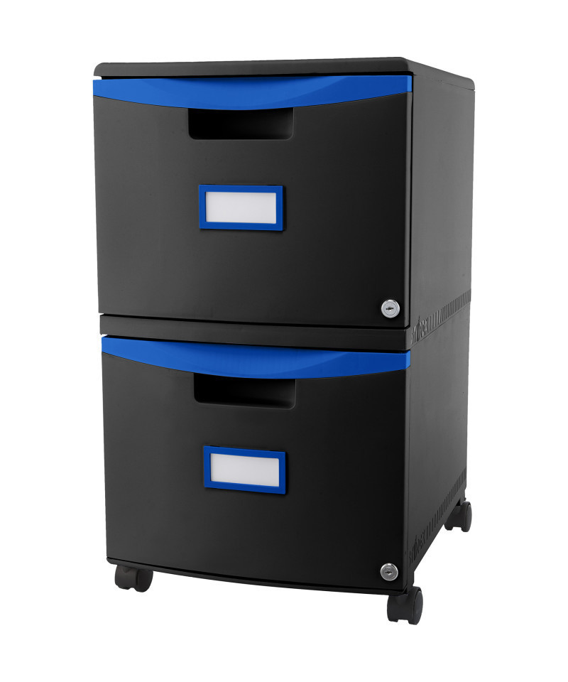 Storex 2 Drawer Mobile File Cabinet with Lock, Black & Blue
