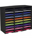 Bring order to your home or office clutter. The polystyrene construction allows for a durable yet lightweight organizer that can hold a combined weight of 150 lbs. Built-in label holders ensure a professional appearance and functional use. If 30 compartments aren't enough, the Literature Organizer can be stacked up to 6 units high (72 compartments). Measures 25.5"H x 31.375"W x 14.125"D.