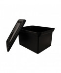 Tuck away important documents inside this roomy, stackable file tote. Thanks to the snap-tight lid, your archived files remain secure while in storage. Plastic file tote accommodates letter and legal size hanging file folders (sold separately). Product contains 30% total recycled content, including 30% postconsumer content, helping you save resources and reduce waste. Measures: 14.25"L x 18"W x 10.875"H. Black.