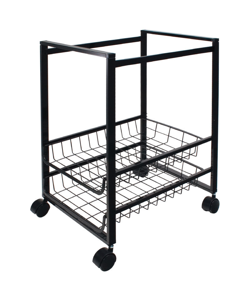 Easily access files without compromising portability. Includes two convenient, pull-out storage baskets for additional supplies and holds letter-size files and documents. The swiveling, dual-wheel castors (2 locking) allow for enhanced mobility and ease-of-access. Made with rugged steel for greater durability. Cart Dimensions: 21"H x 12.75"W x 15"D. Drawer Dimensions: 2"H x 12"W x 14.75"D. Black.