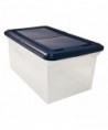 Engineered with innovation in mind, the File Tote with Hinged Lid features a smart cover design that simplifies stacking while ensuring a secure closure. Equipped with a hinged lid that opens from either side for effortless access or can be completely removed to grant full access to your files. Molded handles further enhance its portability, allowing you to transport your files easily. Designed to accommodate letter-size hanging file folders (sold separately).