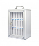 Keep your classroom organized and distraction-free with the Classroom Cell Phone Storage Organizer. With 24 slots sized to fit phones, calculators, and other small devices, this organizer keeps essentials neatly arranged, reducing clutter and the risk of misplaced items. The transparent door allows quick access, while the durable aluminum construction ensures long-lasting protection for your devices. Designed to utilize wall or door space efficiently, this organizer maximizes classroom space while keeping walkways clear, promoting safety. Quick and easy to install with pre-cut mounting holes, it also includes a carry handle for portability, making it easy to move between classrooms. Slot size is 0.5 x 3.4 x 4.3 inches. Measures 11"x 7.9" x 15.7".