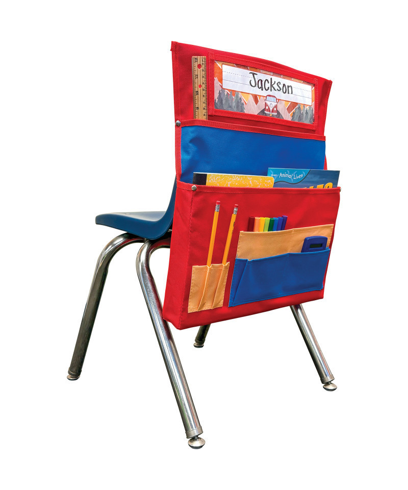 - IDEAL FOR CLASSROOMS & LEARNING SPACES: Brighten your learning space with this colorful and functional over-the-chair storage. Featuring bright colors and reinforced stitching for durability, this chair pocket elevates the look of any classroom. With eight pockets, there is plenty of room to organize school essentials. The two larger storage areas are great for workbooks and folders, while the six smaller pockets are ideal for supplies like pencils, scissors, glue sticks, and crayons.