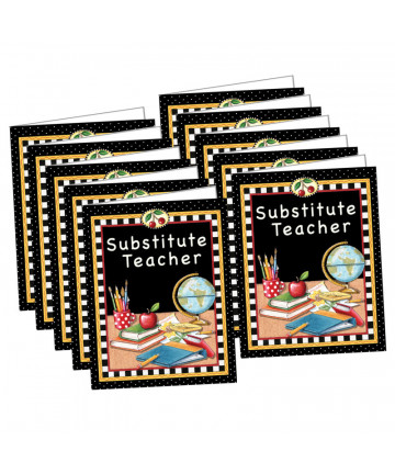 This full-color folder includes ample space for filling in all the information a substitute teacher needs! Features a handy storage pocket, charts, checklists, helpful notes, and more. Sold as a pack of 10 folders.