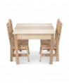 Pull one of the two durable chairs up to the child-size table--they're sized just right for kids, but strong enough to hold grown-ups, too! This sturdy wood table-and-chairs set comes in a natural finish to fit with any home décor, and wipes clean to stay looking crisp and clean. The three wooden pieces are simple to construct with just a Phillips-head screwdriver, and incredibly sturdy once assembled. Top the table with a child's favorite puzzles or use it for arts and crafts, tea parties, puzzle play, lunch and snacks, and so much more! Two chairs have an 11-in seat height. Assemble with a Phillips-head screwdriver, not included. Chairs maximum load 100 lbs.