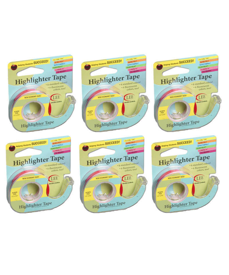 Lee Products Removable Highlighter Tape, Pink, Pack of 6