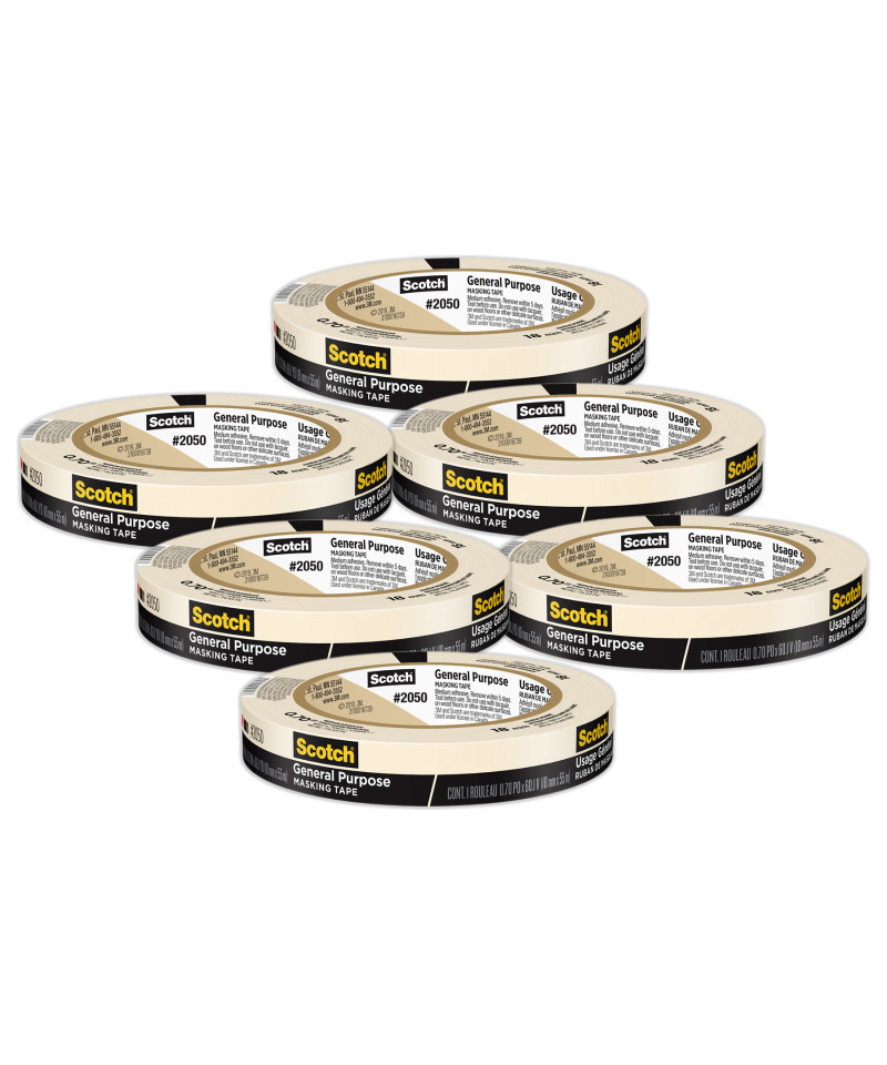 Scotch General Purpose Masking Tape holds to surfaces for up to 5 days and then removes easily without leaving any sticky residue behind. Great for labeling, bundling, and general masking applications. Designed for interior or exterior job site paint masking applications on non-damageable surfaces. Sold as a pack of 6 rolls.