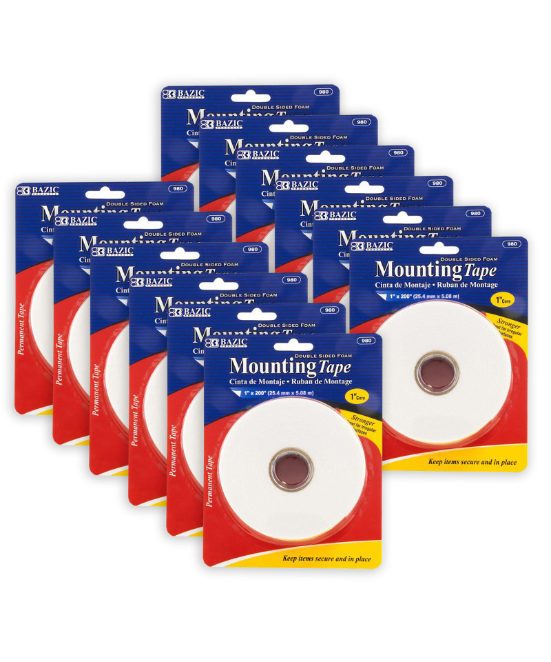 EVA Foam, with a 1-inch core and 1mm thickness, allows for the use of thinner and lighter weight materials. Mounting panels to frames creates virtually invisible bonds. Double-sided tape is coated with permanent adhesive on both sides, ensuring reliable bonding. Ensure your surface is smooth, clean, and dry for the best bond. The adhesive on both the front and back provides reliable bonding. Acid-free and suitable for indoor and outdoor use, it's the perfect alternative to messy glue for light-duty attaching tasks. It's good for kids and the elderly to use double-sided tape. Great for signs, nameplates, wall hooks, picture frame hanging, school projects, arts and crafts design, photos, card making, and crafting. Bonds on glass, metals, plastic, tile, and mirrors too. It provides excellent bonds for most smooth surfaces and is long-lasting for permanent applications. Safe for use on delicate papers and all types of papercrafts. Sold as a pack of 12 rolls.