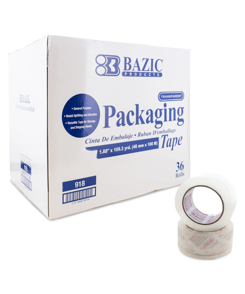 - STRONG ADHESIVE: BAZIC packaging tape unwinds smoothly and easily, resists splitting and tearing, adheres instantly and has a strong film backing.