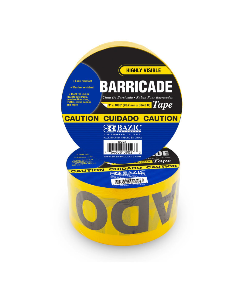 BAZIC Products® CAUTION Barricade Tape, Yellow, 3" x 1000'