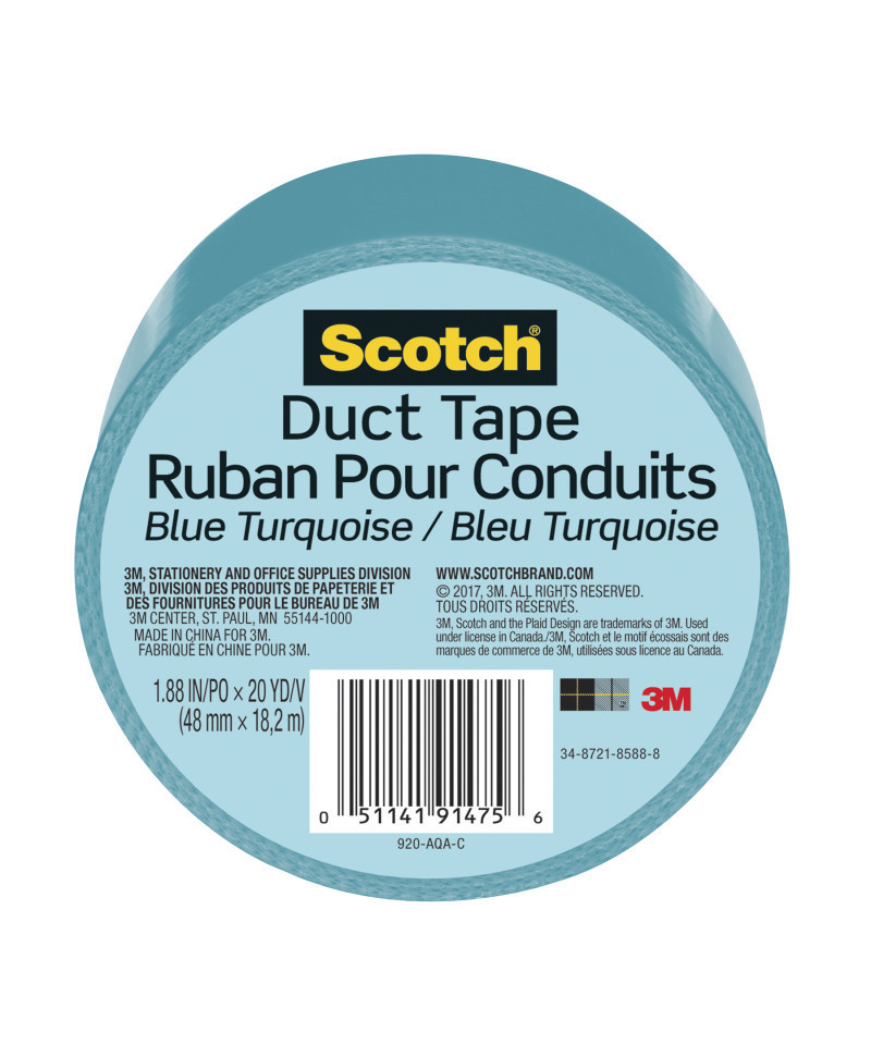 Scotch® Duct Tape for Artists, 1.88 in x 20 yd (48 mm x 18.2 m), Blue Turquoise
