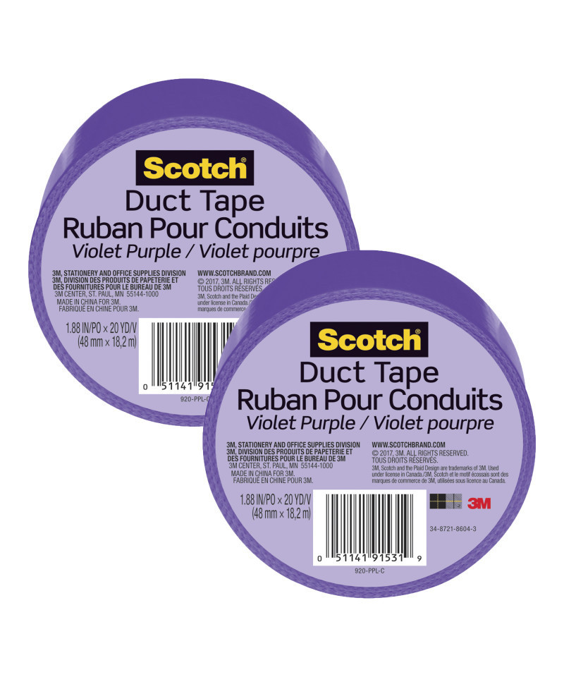 Scotch® Duct Tape for Artists, 1.88 in x 20 yd (48 mm x 18.2 m), Purple, Pack of 2