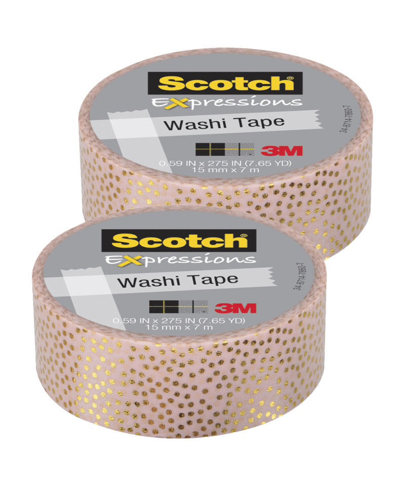 Scotch® Expressions Washi Tape, .59" x 275", Speckled Gold Pastel Pink, Pack of 2