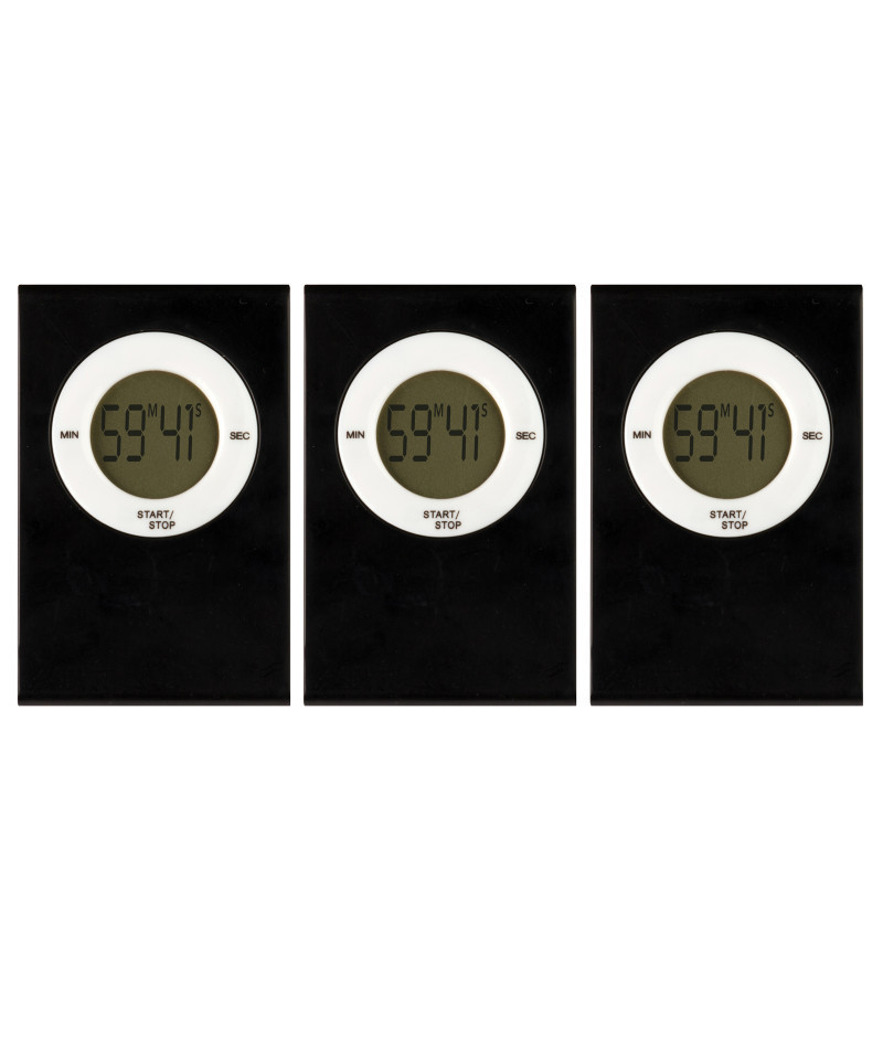 The digital timer is a countdown timer and stopwatch in one. Great for math exercises, science experiments, timed tests, games, classroom management, and more! Includes one AG13 button-cell battery. Sticks to whiteboards or any magnetically receptive surface. Measures approximately 2-1/8" x 3-3/8" x 1/4". Sold as a pack of 3 timers.