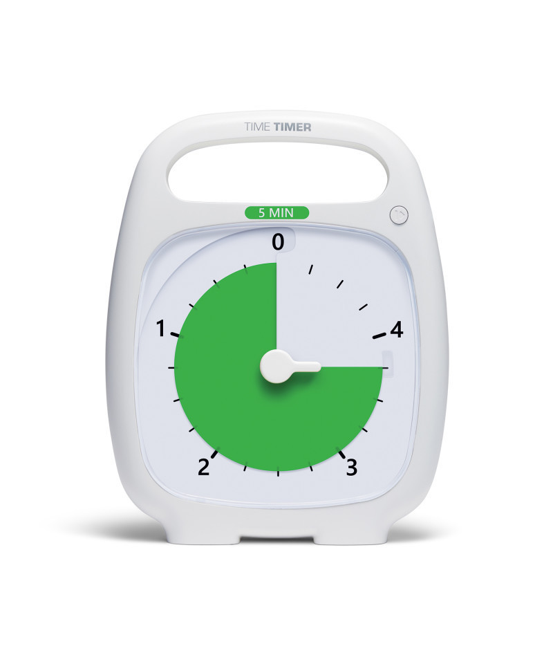 The award-winning Time Timer PLUS® is a high contrast visual timer line available in 5-minute, 20-minute, 60-minute, and 120-minute versions. The Time Timer PLUS® includes a protective lens, on-the-go handle, volume control dial, and easy-to-read numbers, making it ideal for active kids or a day full of meetings. The Time Timer PLUS® you know and love will now feature a pause option, an improved motor, a larger knob for dexterity, reduced packaging materials, and overall package volume reduced by 25%.