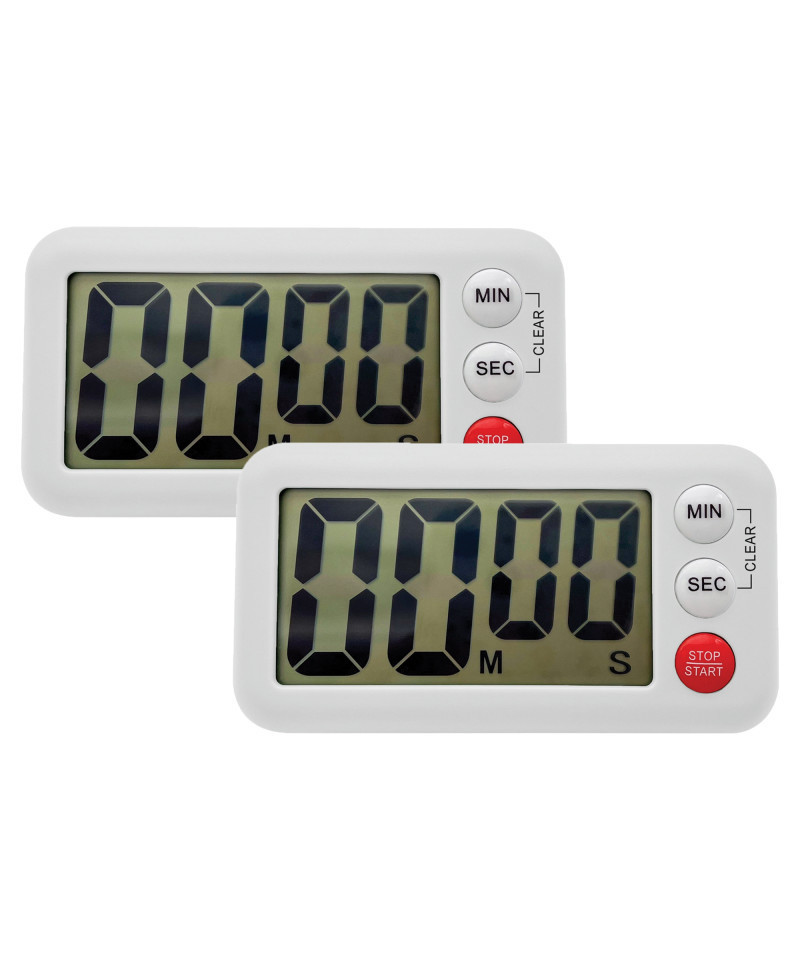 These digital timers are a countdown timer and a stopwatch in one. Great for math exercises, science experiments, timed tests, games, classroom management, and more! They stick to whiteboards or any magnetically-receptive surface and include a retractable stand for desktop use. Requires 1 AAA battery (not included). Sold as a pack of 2.