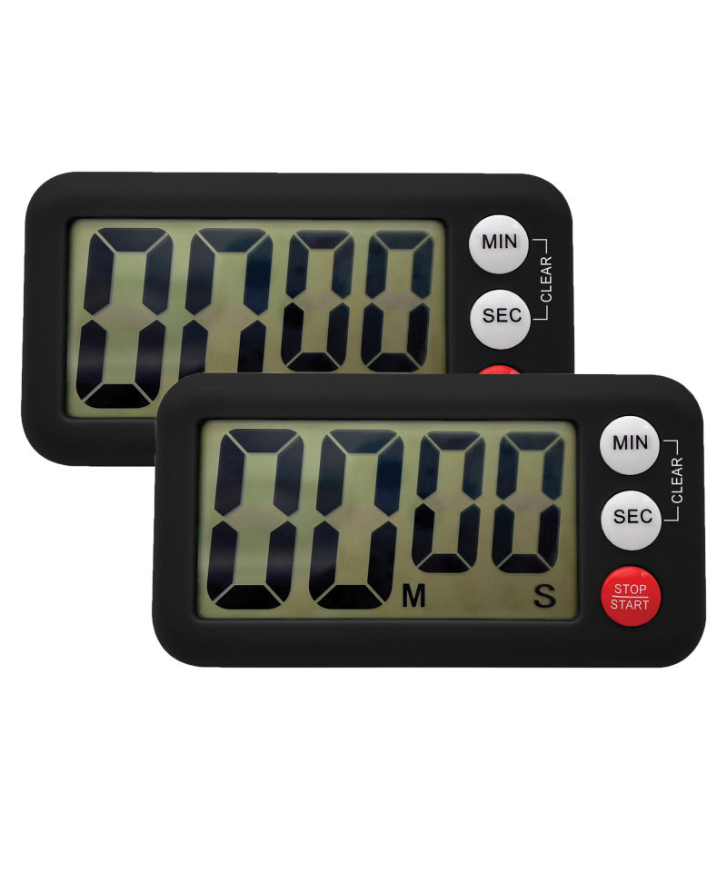 These digital timers are a countdown timer and a stopwatch in one. Great for math exercises, science experiments, timed tests, games, classroom management, and more! They stick to whiteboards or any magnetically-receptive surface and include a retractable stand for desktop use. Requires 1 AAA battery (not included). Sold as a pack of 2.