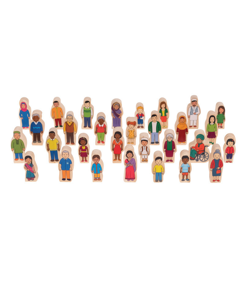 - 30 PIECES TO REPRESENT ALL FAMILIES -- This wooden block set features vibrant illustrations of families from diverse cultures and traditions. Pieces include 20 adults and 10 children.