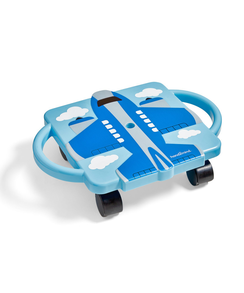 Add a playful twist to gym class or outdoor activities with this airplane-themed scooter available in 3 colors. Boost core strength, gross motor skills, and coordination. Equipped with sturdy handles for safety and balance, ensuring hands stay secure during the ride. The plastic, durable design can be used on any hard floor surface.
