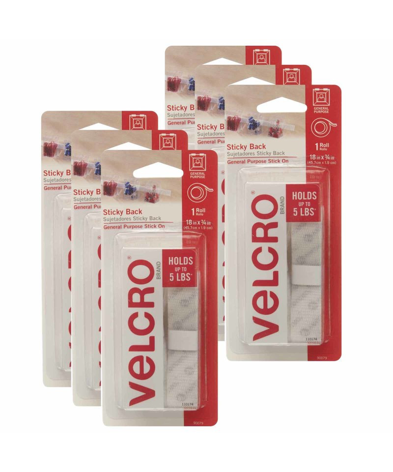 VELCRO® Brand Sticky Back Fasteners are perfect for smooth surfaces. Cut your tape to whatever size you need for walls, glass, tile, plastic, metal and wood. Sticky Back Fasteners are incredibly versatile and are even water resistant. Our adhesive tape, strips and coins give you an array of options for keeping things organized and connected. A durable and long lasting fastening solution perfect for around the house, classroom, office and garage! Unlimited possibilities for organization and crafting. Each pack includes 18" x 3/4" of VELCRO tape. Sold as 6 rolls.