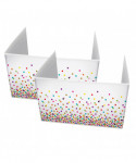 This durable designer Confetti Classroom Privacy Screen will brighten up any classroom and help students keep a positive attitude, even during test time! Ideal for reading, testing, or working on individual projects. The non-porous surface is easy to clean and can be wiped-down or sprayed with disinfectant to help prevent the spread of germs. Center Panel: 22"W x 16"H, Side Panels: 14"W x 16"H, Assembled: 22"W x 16"H x 14"D. Sold as a pack of 2 screens.