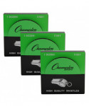 Get their attention with the Champion Sports Medium Weight Metal Whistle. This durable whistle features a metal ring for easy attachment. Silver. Each pack includes 12 whistles. Sold as 3 packs for a total of 36 whistles.