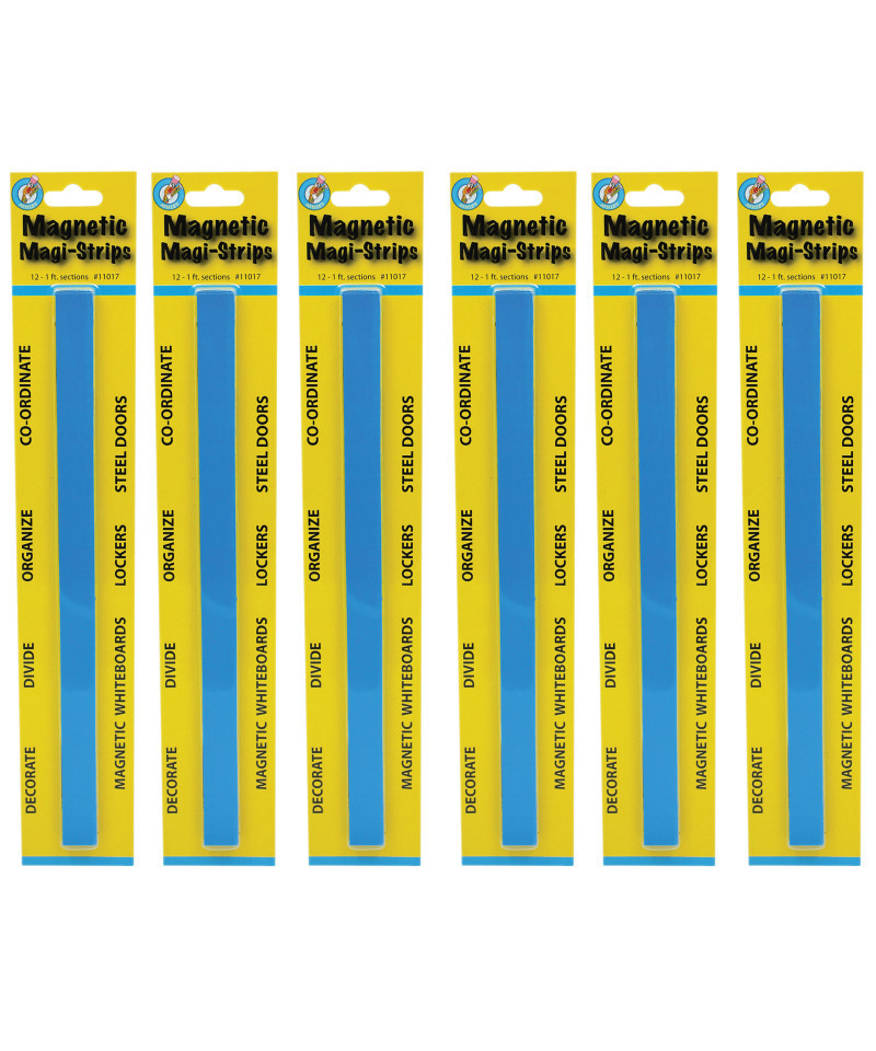 Great for use as border or dividing steel surfaces into sections for organization, data sets and charts. Use on magnetic whiteboards, steel lockers, refrigerators, and more. Each piece measures 3/4" x 12". Each pack includes 12 pieces, totaling 12 feet. Sold as 6 packs for a total of 72 pieces (72 feet).