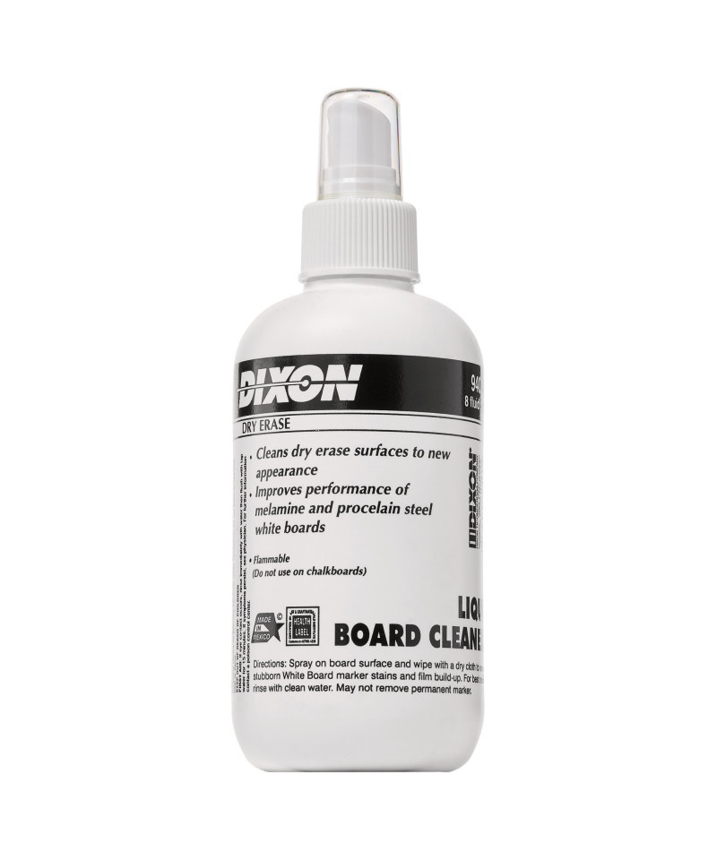 Dixon Dry Erase Board Cleaner removes ghosts and other unsightly marks on your white board. This liquid board cleaner removes smudges and accumulation of grit from most white boards, and is available in two convenient sizes. More than a writing and art products company, Dixon Ticonderoga empowers people to take conscious and subliminal thoughts, facts, ideas and dreams, and preserve them using tools that are simply extensions of themselves. Each spray bottle includes 8 oz.