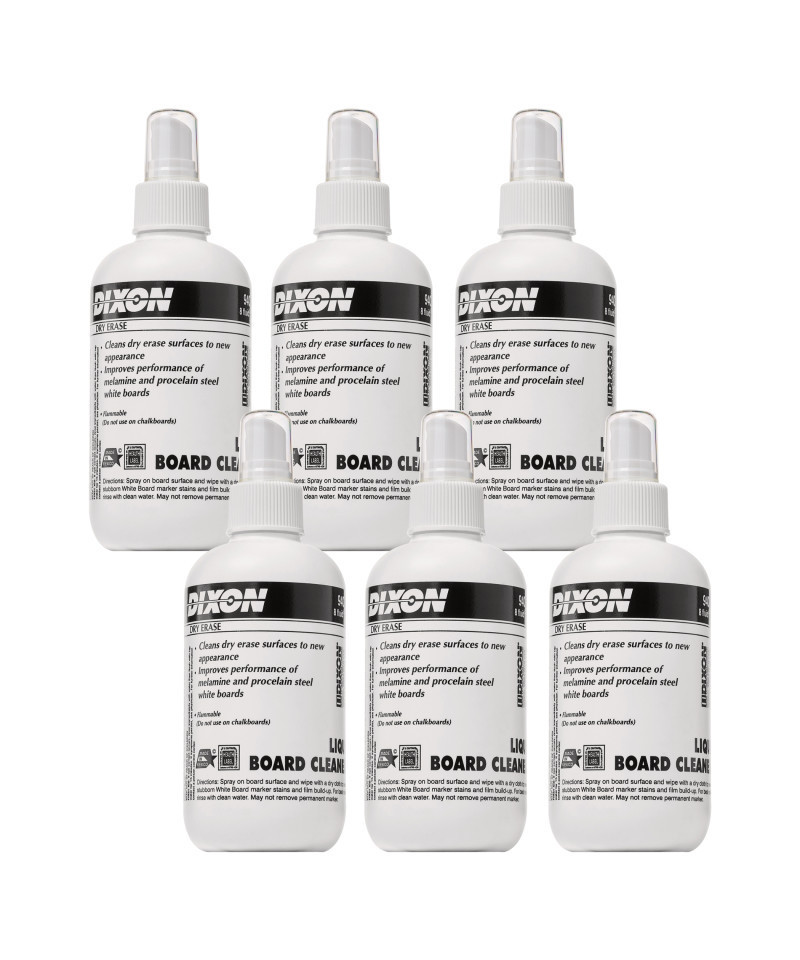 Dixon Dry Erase Board Cleaner removes ghosts and other unsightly marks on your white board. This liquid board cleaner removes smudges and accumulation of grit from most white boards, and is available in two convenient sizes. More than a writing and art products company, Dixon Ticonderoga empowers people to take conscious and subliminal thoughts, facts, ideas and dreams, and preserve them using tools that are simply extensions of themselves. Each spray bottle includes 8 oz. Sold as a pack of 6.