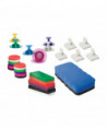 Dowling Magnet's most popular whiteboard magnets help you post important announcements or assignments, display student work, hang ID lanyards or hall passes, erase your board, and more! Makes a great starter set for a new teacher or a new classroom too. Includes 6 Big Push Pin Magnets, 6 Button Magnets, 5 Ceramic Magnetic Hooks, 3 Big Block Magnets, and 1 Magnetic Whiteboard Eraser. Component colors vary.