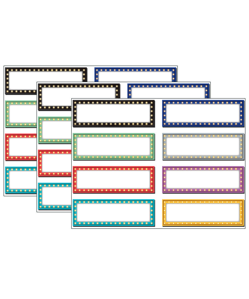 Decorate your whiteboard in a snap with durable, reusable magnetic decor! Add flair to any magnetic receptive surface such as doors, desks, shelving, and bins. Measures about 4.75" x 1.5". 8 colors. 20 pieces per pack. Sold as 3 packs for a total of 60 labels.