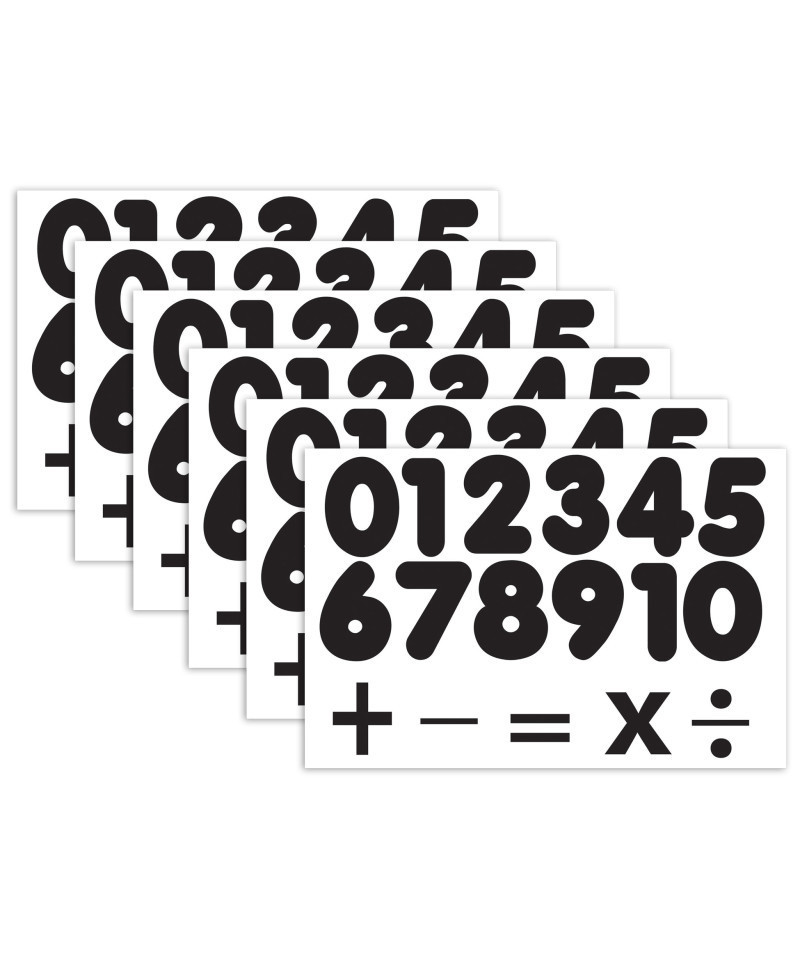 Great for use in the classroom or at home for learning numbers! Use on magnetic whiteboards, steel lockers, refrigerators, and more. Die-cut and easy to punch out. Letters measures approximately 1.75" tall. Each set includes 32 black, magnetic number pieces. Sold as 6 packs for a total of 192 pieces.