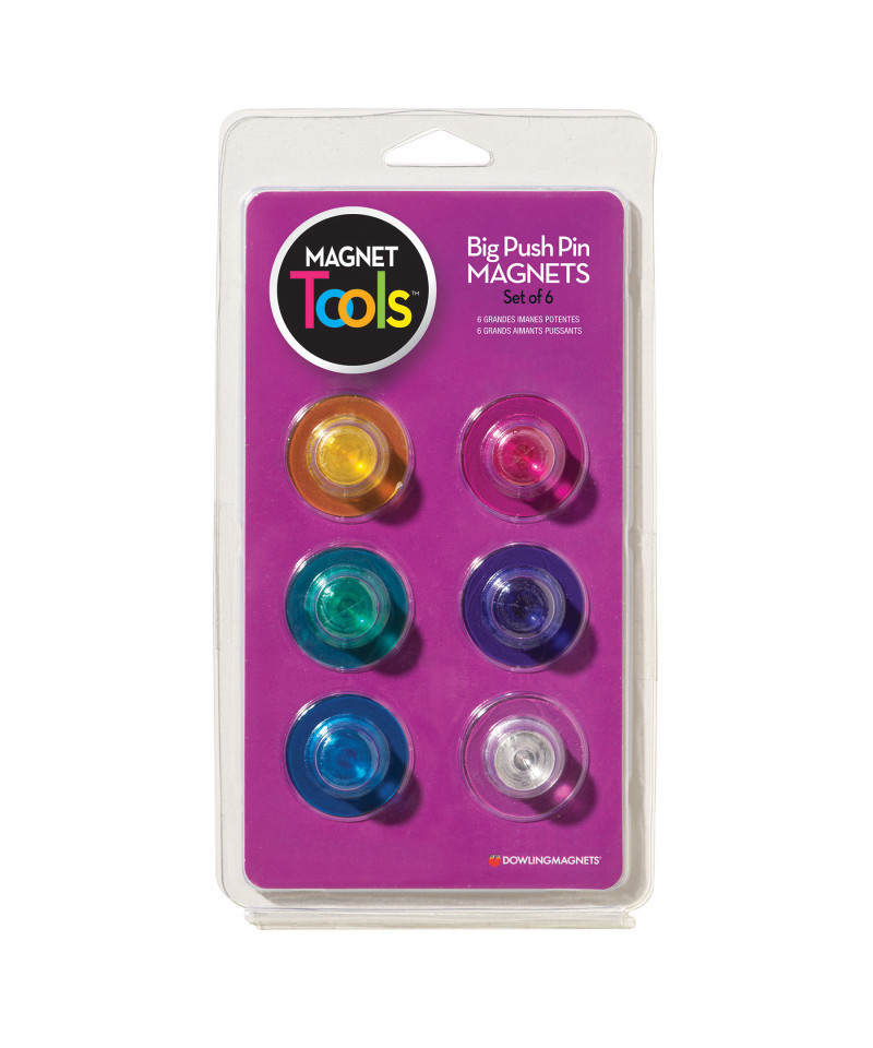 - Oversized design/chunky shape make these magnetic push pins easy to grab and hard to lose. Measure 1.38 inches in diameter x .80 inch high each--large magnets. Essential office supplies!