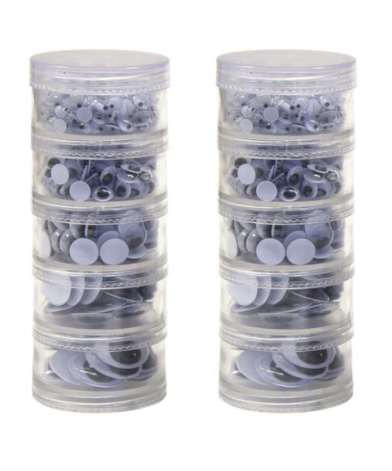 Bring projects to life with Creativity Street Wiggle Eyes! Great for storing and keeping these Wiggle Eyes organized. The screw-bottom containers feature different selections of our most popular Wiggle Eyes. This assortment of round and oval Black Wiggle Eyes Sizes includes: Round - 5 mm x 288 pieces, 7 mm x 44 pieces, 10 mm x 72 pieces, 15 mm x 36 pieces. Oval - 20 mm x 20 pieces. Sold as 2 packs for a total of 1120 Wiggle Eyes.