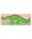 This colorful croc is waiting to teach your little ones numbers one to ten! Behind each of the numbered pieces are black dots that match the number on the wooden puzzle piece, little ones must match the number to the quantity of dots on the base board to complete the puzzle. This chunky wooden puzzle features 10 pieces that are generously sized to make it easier for little hands to lift, grasp, examine and replace. Bigjigs Toys wooden puzzles help to develop vocabulary and aid youngsters to recall words as they recognize shapes, colors and images. Helps to develop dexterity, matching skills and concentration. The wooden base board of Bigjigs Toys puzzles are printed with images and colors to aid the learning process and add educational value. Made from high quality, responsibly sourced materials. Conforms to current ASTM and CPSIA safety standards. Age 2+ years. Includes 10 play pieces.