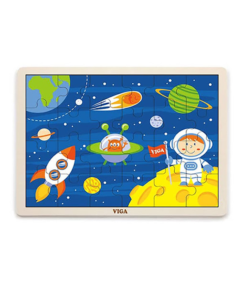 This classic Space Jigsaw Puzzle is a fun and educational way to engage young minds. With 24 sturdy pieces made from natural hardwood, this puzzle is designed to be both durable and engaging for little hands. Measuring 12" wide x 9" high, it provides the perfect size for early learners to develop important cognitive, social, and emotional skills while having fun. Ideal for children 24 months and up, this puzzle encourages problem-solving and hand-eye coordination, making it a great value for both learning and play.