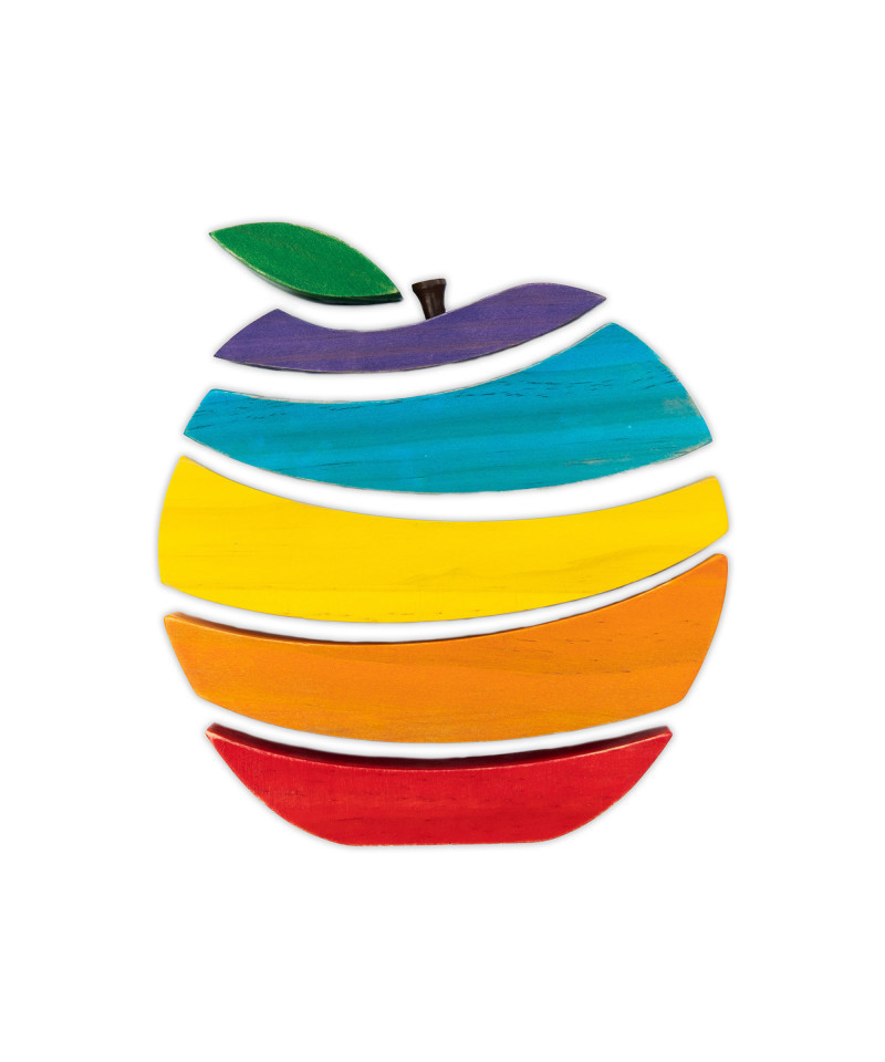 This chunky, apple-shaped stacking puzzle features 6 brightly colored wooden pieces.