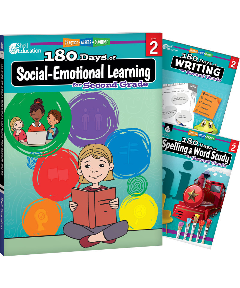 Shell Education 180 Days Social-Emotional Learning, Writing, & Spelling Grade 2: 3-Book Set