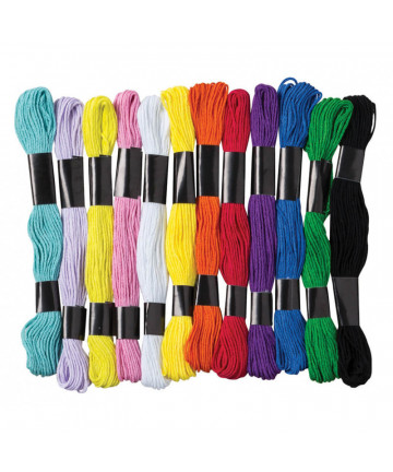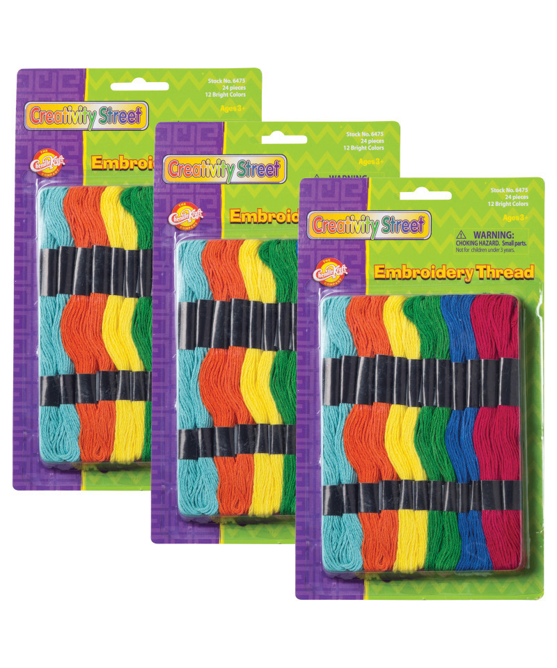 Catch the friendship bracelet craze! Also great for needlecrafts. Vibrant, non-toxic colored thread in 12 assorted colors. Each pack includes 24 skeins. Each skein is over 8 yards long! Sold as 3 packs.